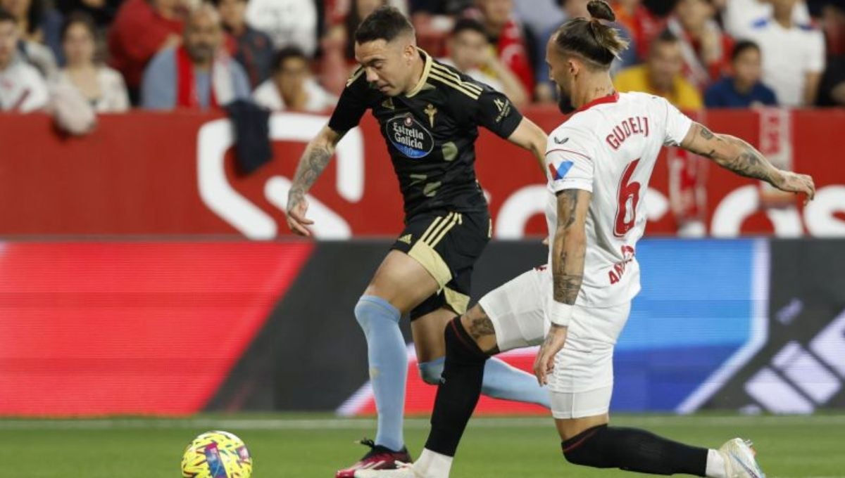 Gudelj trata de cortar el avance de Iago Aspas.@LaLiga
