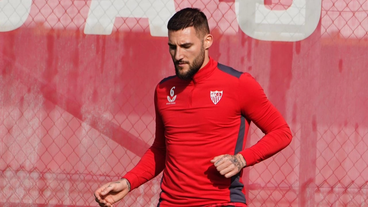 Nemanja Gudelj, que se ha ejercitado con sus compañeros, ha sido la principal novedad en el entrenamiento del Sevilla FC que se ha llevado a cabo en este jueves. El futbolista serbio sufrió una rotura del menisco cruzado externo de su rodilla izquierda en el primer partido de este año 2024 contra el Athletic.