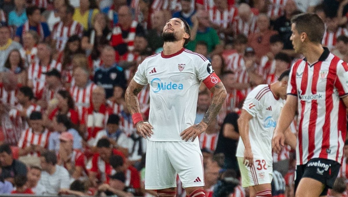 Gudelj se lamenta tras un gol encajado por el Sevilla FC en la derrota ante el Athletic Club.Cordon Press