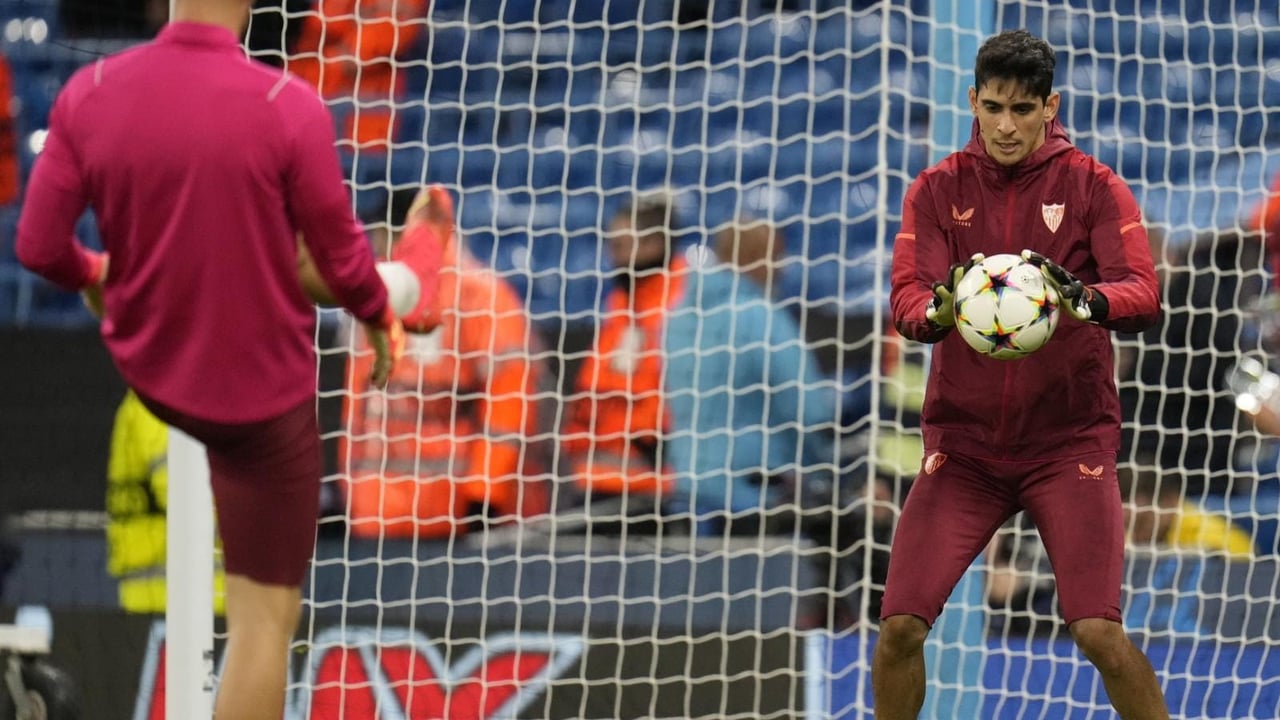 Yassine Bounou se ejercita antes de un partido con Marko Dmitrovic.SFC