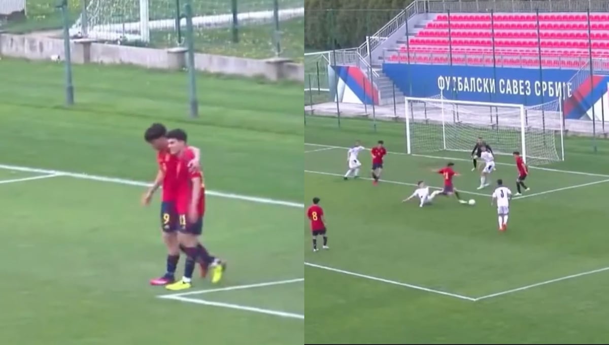 El actual canterano del Real Madrid anotó tres tantos con la selección española en el encuentro ante Serbia que terminó con goleada absoluta