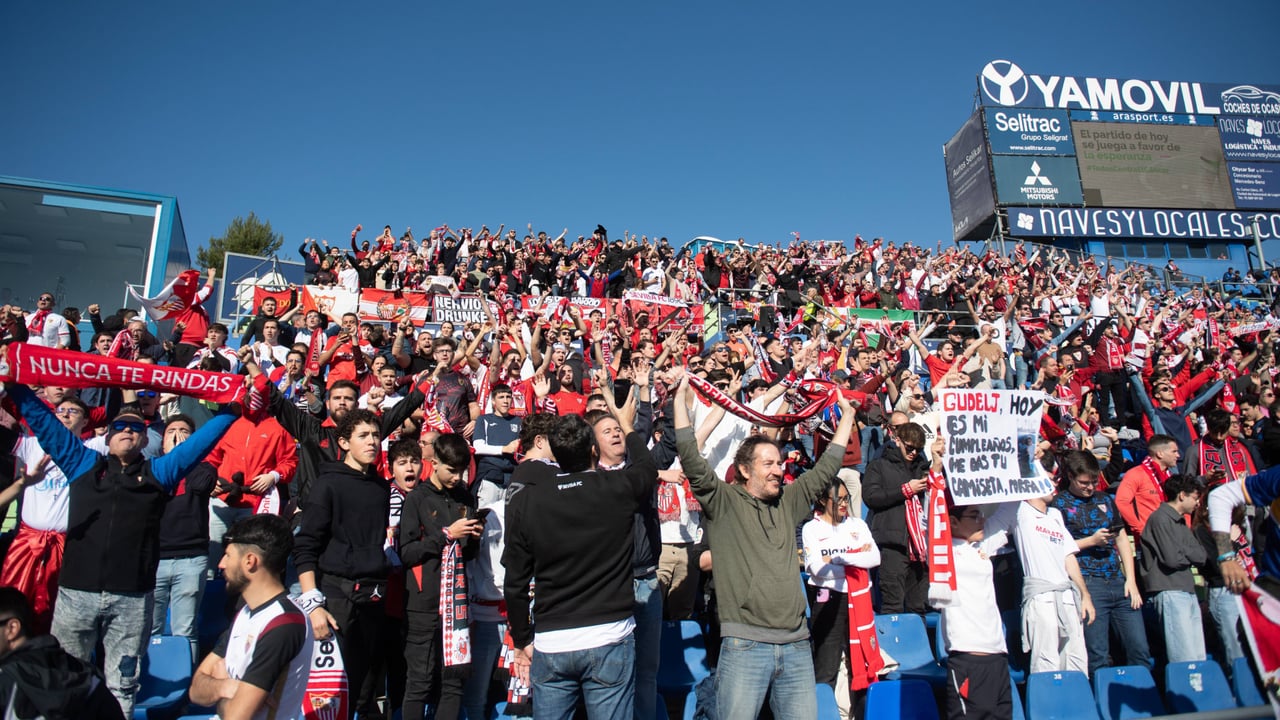 Esta situación, hasta cierto punto bastante comprensible si uno empatiza un poco con un entrenador que hace lo que puede para sacar rendimiento a una de las plantillas más limitadas que se recuerdan por Nervión, empieza a generar cierto cachondeo en la afición blanquirroja. En torno al medio millar de hinchas viajaron este sábado hasta Getafe para poner colorido en las gradas del Coliseum y animar a los suyos.