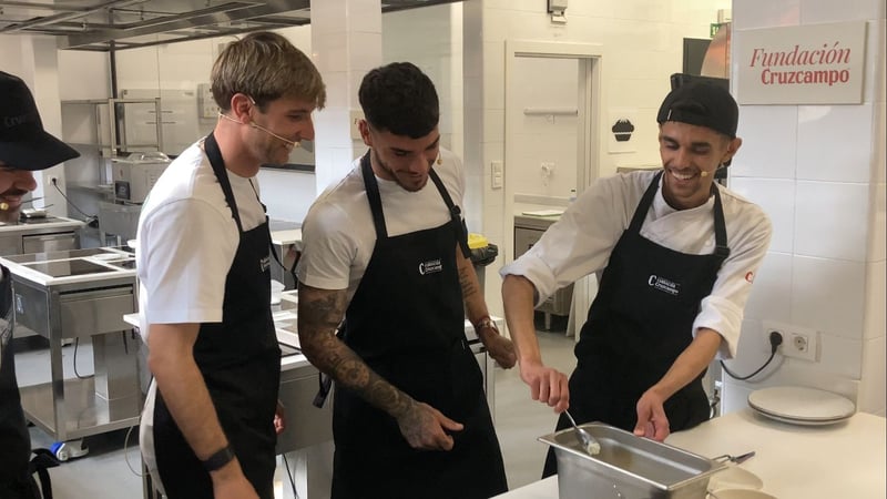 Durante el acto, vimos curiosas interacciones entre los futbolistas de sendas entidades, quienes, bajo el lema “El talento ayuda al talento”, vivieron una experiencia inmersiva en las cocinas de Factoría Cruzcampo, llegando a elaborar en equipos mixtos distintas creaciones gastronómicas solidarias. Fue un acto donde Cruzcampo trató de darle voz a su acción social y los jugadores de ambos equipos destacaron la necesidad de trabajar por equipo en todos los ámbitos.