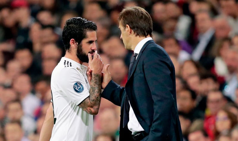 Isco sólo ha podido coincidir con Lopetegui en ocho partidos de LaLiga y tres de la UEFA Champions League. Otra vez separados. Ahora, cruza los dedos para que no le pase con Jorge Sampaoli lo mismo que le ocurrió con Luis Enrique, Robert Moreno, Solari, Zidane o Ancelotti. De momento, el argentino llegó elogiándole y tildándole de "determinante". Habrá que esperar acontecimientos.