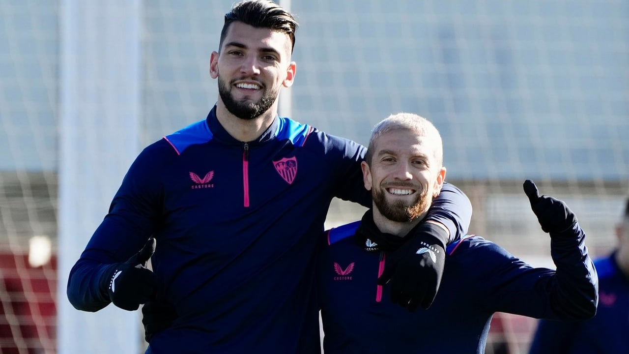 El extremo belga del Sevilla no ha estado presente sobre el césped junto a sus compañeros, cosa que sí ha hecho el argentino, que regresa al grupo tras superar su lesión en el Mundial de Qatar