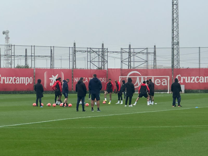 El conjunto sevillista completó la penúltima sesión de la semana con la baja de estos dos futbolistas, motivada la del nazareno por una sobrecarga. Por su parte, el que fuera capitán estuvo cercano al grupo a pesar de la lluvia