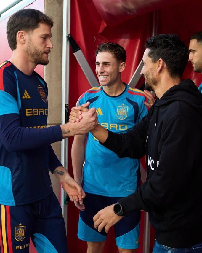 Jesús Navas, que el próximo viernes cumple 40 años (su mujer lleva "dos o tres semanas preparando algo sin decir nada"), ha visitado junto a Álvaro Negredo la concentración de la selección española en Sevilla para el partido de este martes ante Turquía, último de la fase de clasificación del Mundial de 2026, ocasión perfecta para comprobar que en la 'Roja' no se olvidan de él. "Es un orgullo el cariño de todo el mundo y ver de nuevo a los compañeros. Estamos disfrutando mucho con la selección y ojalá sigamos en la misma línea. Mi vida es el fútbol. Como digo, la selección es lo más grande. La cadera no daba para más, así que cada vez que me acerco a verla o al Sevilla FC se me revuelve todo, pero es lo que toca", aseguraba el palaciego en Radio Sevilla.