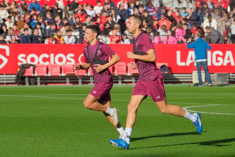 El palaciego y el catalán saltaron antes que el resto del equipo para ejercitarse en solitario y con balón ante la atenta mirada de los aficionados sevillistas