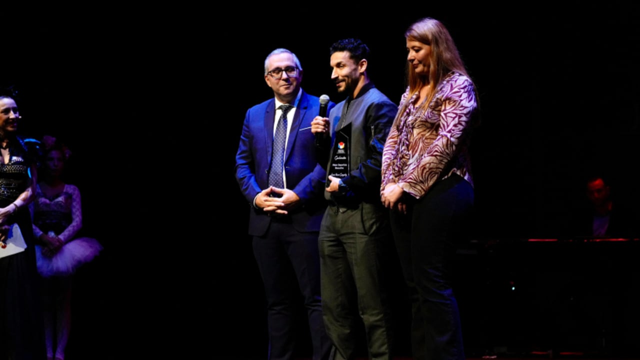 El galardonado, en la VII Gala del Deporte de Los Palacios, que tuvo lugar en el Teatro Municipal Pedro Pérez Fernández.SFC