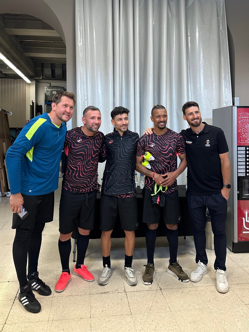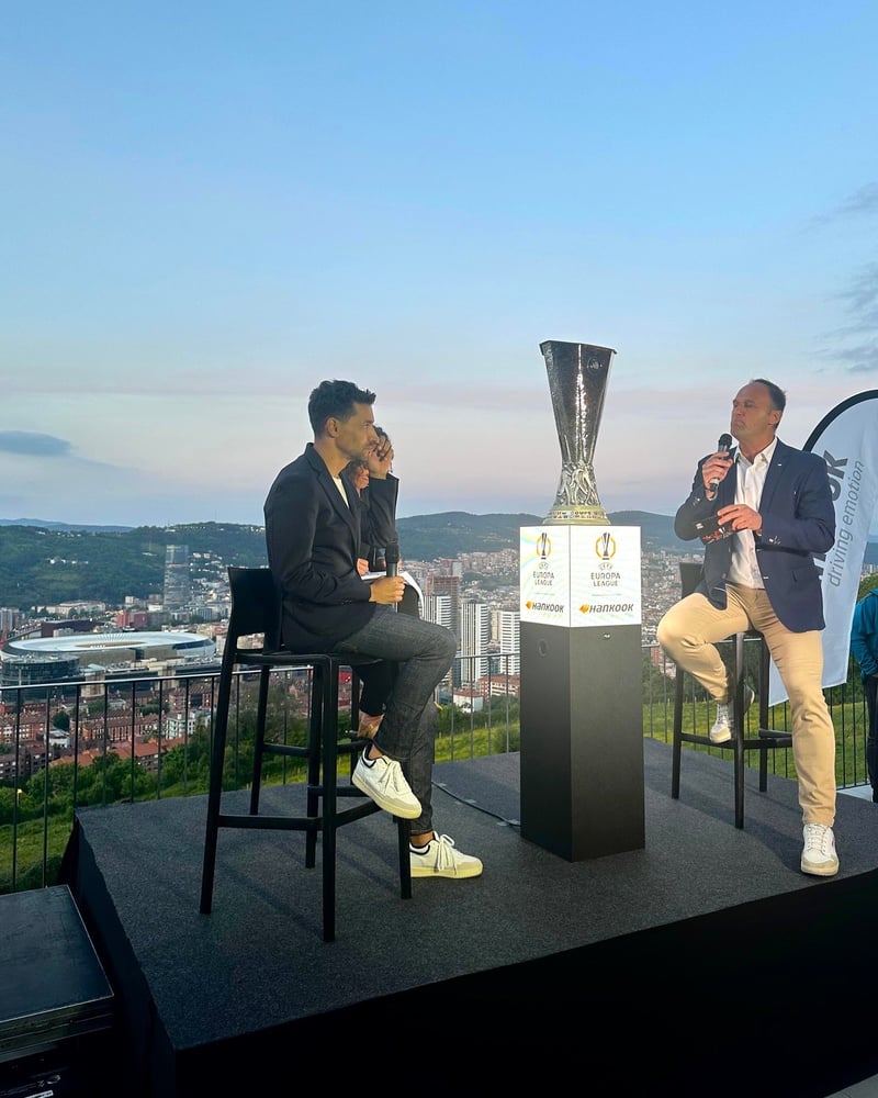 "Disfrutando de la final de la Europa League en Bilbao. Esta competición que tantas alegrías nos ha dado a los sevillistas", tuiteaba Jesús Navas este miércoles, tras participar en el partido de leyendas organizado por la UEFA en Lezama con ocasión de la disputa en la capital vizcaína de la final del segundo torneo continental entre Manchester United y Tottenham Hotspur. Pero no sólo participó el palaciego, sino que, puestos a regresar a los terrenos de juego con otra camiseta, se llevó el reconocimiento al MVP de una cita que le reunió con su otrora compañero Fernando Llorente y otros históricos rivales como el portugués Nani o el búlgaro Berbatov. Enfrente, una selección de Euskadi con Beñat, Balenziaga, Iraizoz, Carlos Martínez, Xabi Prieto, Susaeta o Toquero, grandes nombres, sobre todo, de Athletic Club y Real Sociedad que disputaron la citada competición.