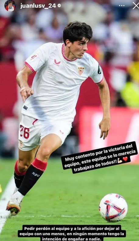 Juanlu Sánchez protagonizó muy a su pesar la mala noticia de la victoria sevillista al poner en riesgo los tres puntos por una expulsión en la recta final del partido que resultó de lo más polémica.