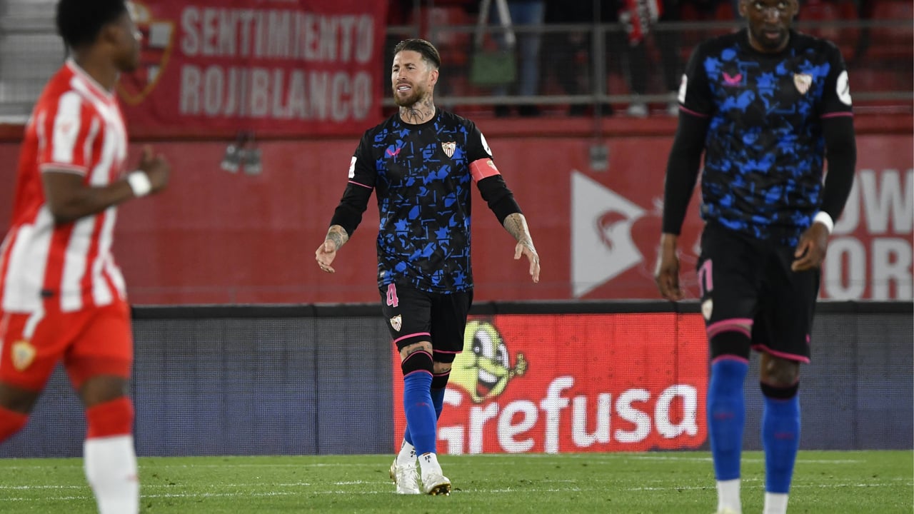 El capitán del Sevilla, Sergio Ramos, lamenta la oportunidad perdida en Almería en un duelo que los de Quique lograron remontar pero se dejaron empatar en los últimos compases