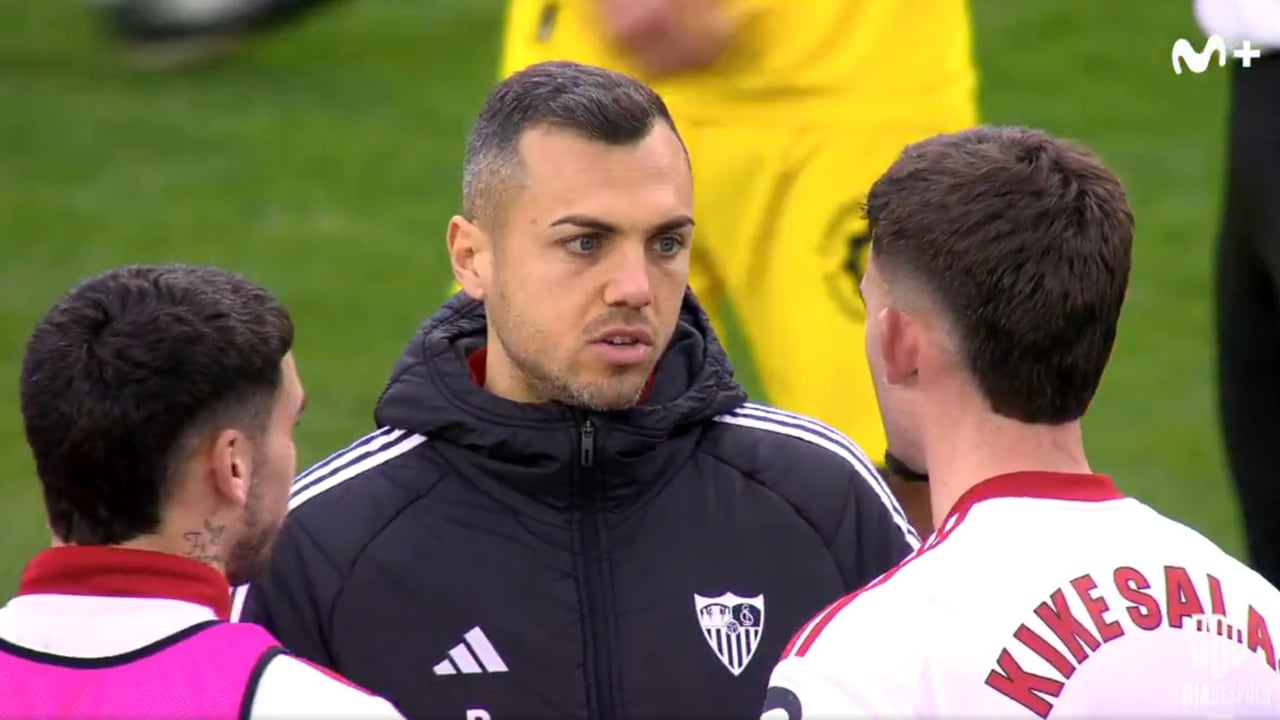 Joan Jordán habla con Kike Salas e Isaac Romero nada más acabar el Sevilla - Girona.Captura Movistar+