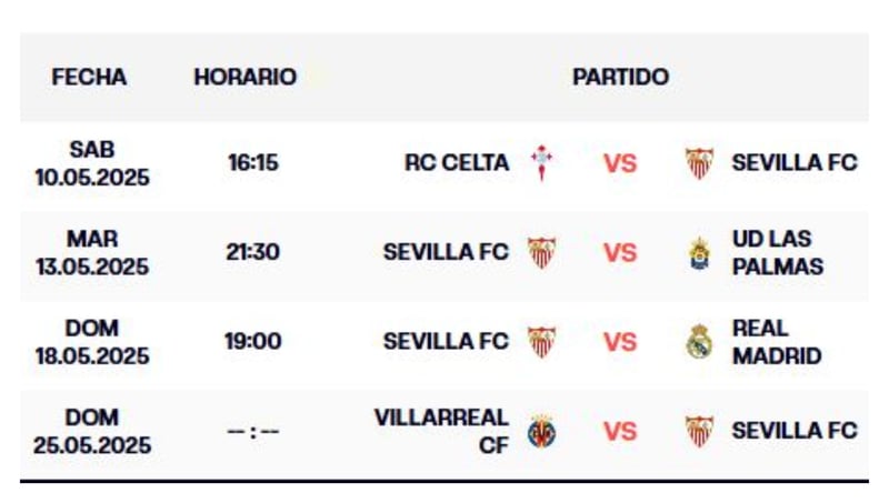 El calendario del Sevilla: Celta, Las Palmas, Real Madrid y Villarreal