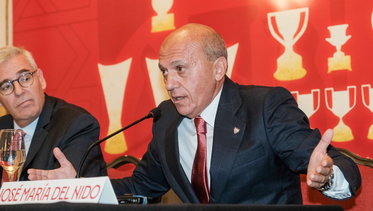 José María del Nido Benavente, expresidente del Sevilla Fútbol Club, ha comparecido hoy en rueda de prensa desde el hotel Alfonso XIII para analizar la actualidad del equipo y de la entidad a poco menos de una semana de la Junta General de Accionistas, fijada para el 29 de diciembre, y también para hablar de sus aspiraciones a la presidencia del club nervionense.