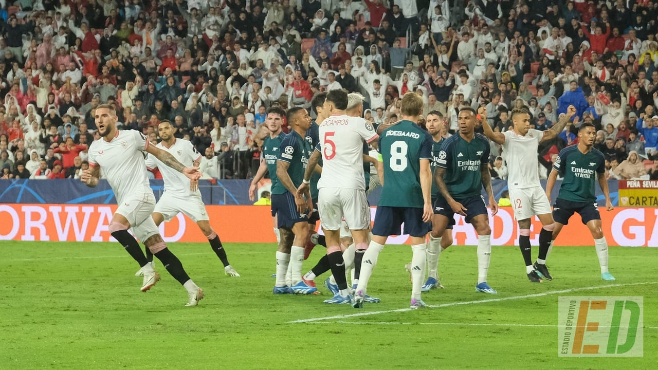 El cielo encapotado y la amenaza de lluvia, cumplida en la segunda mitad, fueron un simbólico presagio de lo que se le venía encima al Sevilla FC. Gabriel Jesús, MVP indiscutible del encuentro correspondiente a la tercera jornada en el Grupo B de la Champions League, selló el triunfo del Arsenal FC con una fenomenal asistencia al filo del descanso, que había ensayado al principio con su compatriota Martinelli, y y un golazo nada más arrancar la segunda mitad. Un 1-2 que deja a los blanquirrojos andaluces con sólo dos puntos de nueve posibles, igual que un PSV con el que teóricamente se jugarán la segunda plaza, aunque aquí pocos, por no decir nadie, se baja aún del barco. Sergio Ramos fue sincero y realista, pero el míster aboga por seguir soñando y dos 'pesos pesados', uno del consejo de administración y otro del vestuario, se suman al optimismo pese a la derrota.