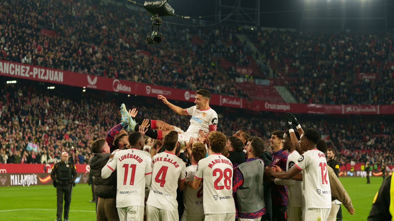 Saltó al césped con sus dos hijos, posando con sus ocho títulos y en medio de un ambientazo en el Ramón Sánchez-Pizjuán, con tifo incluido para hacer honor a su grandeza. Jugó 70 minutazos, se fue besando el césped y haciendo pararse el partido porque no se iba un cualquiera. Se despedía de su casa, en su penúltimo partido como profesional, uno de los grandes de la historia; de la del Sevilla FC y de la de todo el fútbol español. Además, celebró una victoria con gol de canterano (Manu Bueno se lo dedicó) y acabó manteado antes de dar la vuelta de honor a su casa. LEYENDA, con mayúsculas que ha conseguido estampar su nombre en la inmortalidad siendo el mismo niño humilde que cautivó a Pablo Blanco regateando rivales con un balón más grande que él, que fue catapultado a la élite por Joaquín Caparrós y que ha sido sostenido siempre por un pilar infalible que es el de su familia. Como han explicado Paco, su padre, y Alejandra, su mujer, sus seres queridos no caben en sí de orgullo por lo que es y por cómo lo ha conseguido. Orgullo de 'padres'. Disfruta en la galería fotográfica que encabeza estas líneas y en el vídeo que se adjunta a continuación las mejores imágenes de la despedida de Nervión a un tipo ejemplar, de don Jesús Navas González.