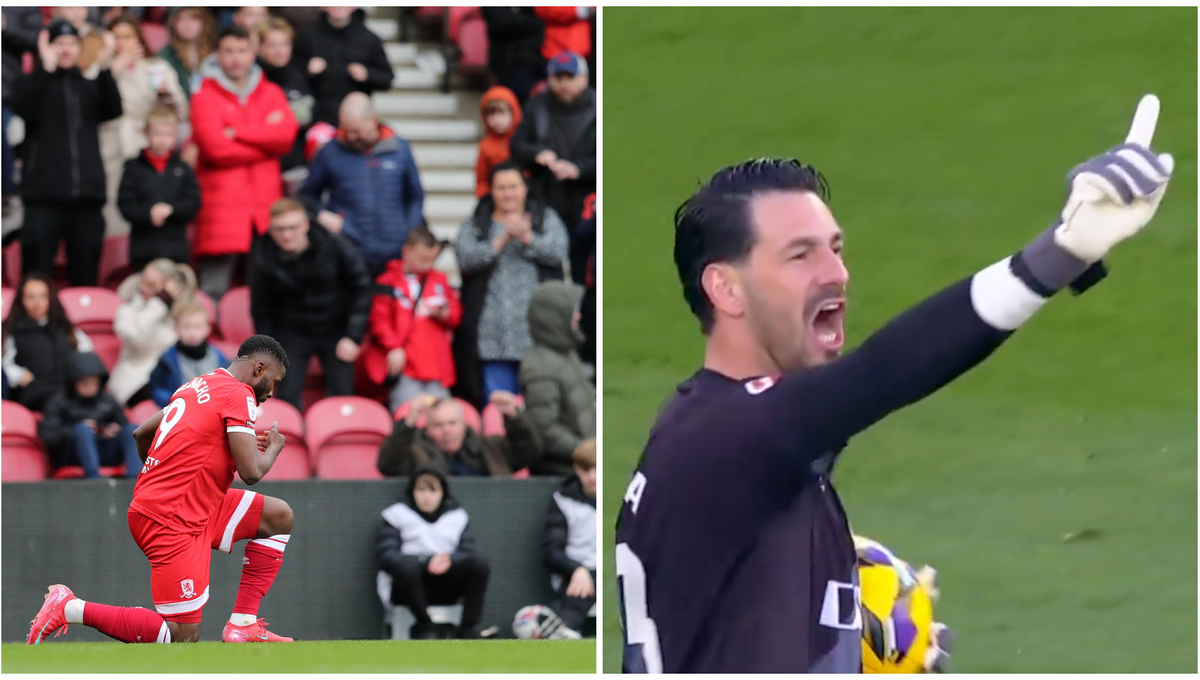 La celebración de Kelechi y el 'recochineo' de Batalla.@Boro / DAZN