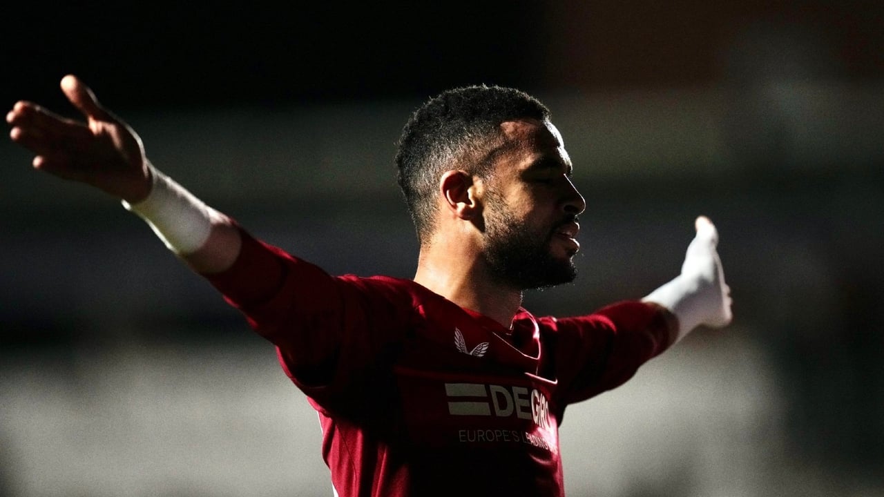 En-Nesyri celebra uno de sus tres goles en el Linares-SevillaSFC
