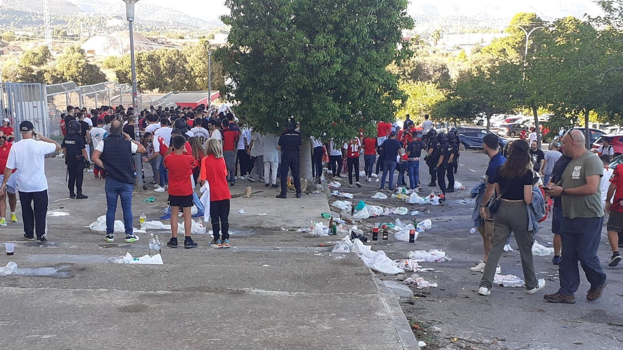 Lío antes del Mallorca - Sevilla: actuación policial, seis multados, quejas por suciedad, insultos cruzados...