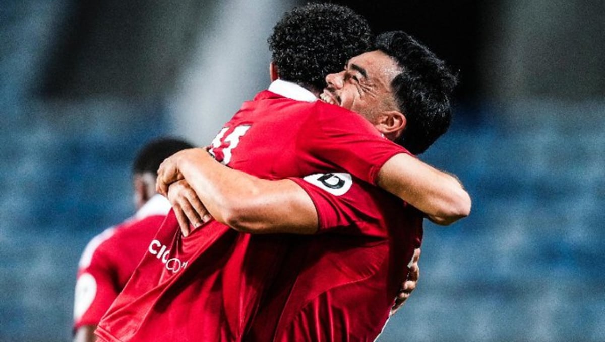 Gabriel Suazo y Rubén Vargas se abrazan tras el gol del suizo a pase del chileno en un amistoso ante el Sunderland.Sevilla FC