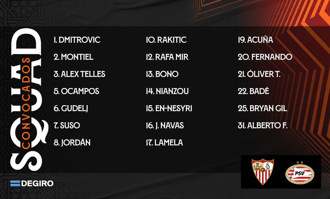 La lista de convocados del Sevilla para recibir al PSV Eindhoven