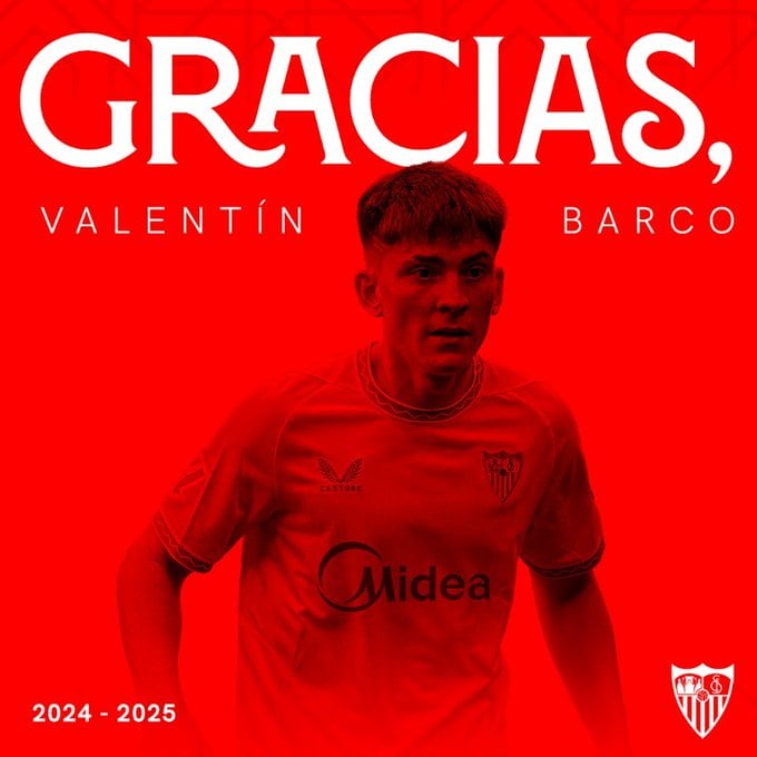 "El Sevilla FC y el Brighton & Hove Albion FC, club propietario de los derechos de Valentín Barco, han acordado la finalización del contrato de cesión que vinculaba al lateral argentino al club de Nervión, en principio, hasta el próximo 30 de junio. De esta forma, Barco deja de pertenecer a la plantilla tras esta primera mitad del campeonato, en la que ha disputado nueve partidos oficiales, siete de LaLiga EA Sports y dos de la Copa del Rey. La entidad quiere agradecer a Valentín Barco su desempeño durante estos meses, así como desearle la mejor de las suertes en el futuro", decía el escueto escrito, que no mencionaba su nuevo destino al no ser una cuestión de su incumbencia.