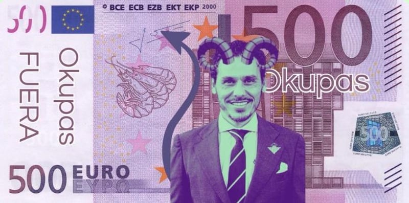 El mensaje de Joaquín Caparrós durante la previa del partido, solicitando la Paz social en el campo por el bien del equipo, no fue suficiente, mostrando el sevilismo de esta forma su enfado contra la nefasta gestión de los actuales rectores, a los que directamente señalaron con unos billetes que fueran repartidos durante la previa y en la que podían leerse mensajes como ‘American Gangster’, aludiendo directamente a su nuevo acuerdo con A-Cap, el cual les permitió sacar adelante la última junta de accionistas. ‘Okupas fuera’ era otro de los mensajes que aparecían en algunos de los billetes, en los que también podía verse a un José María del Nido caricaturizado como el demonio y con un escudo del Betis en su solapa. Sin lugar a dudas, una clara declaración de intenciones contra una cúpula directiva que no está respaldada por las masas y que partido tras partido se ve increpada por la grada del Ramón Sánchez-Pizjuán, donde el ambiente hace tiempo que dejó de ser el ideal para disfrutar del fútbol.