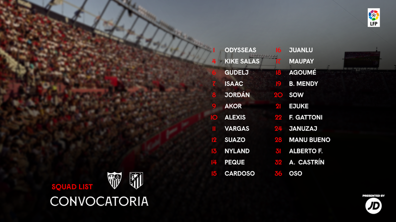 La lista al completo con los 25 futbolistas convocados por Luis García Plaza para el encuentro de este sábado en la jornada 31 de LaLiga la componen los porteros Odysseas Vlachodimos, Orjan Nyland y Rafa Romero; los defensores Juanlu Sánchez, Fabio Cardoso, Kike Salas, Fede Gattoni, Andrés Castrín, Gabriel Suazo y Joaquín Martínez 'Oso'; los centrocampistas Nemanja Gudelj, Batista Mendy, Lucien Agoumé, Djibril Sow, Joan Jordán y Manu Bueno; y los atacantes Rubén Vargas, Chidera Ejuke, Adnan Januzaj, Peque Fernández, Alexis Sánchez, Isaac Romero, Neal Maupay y Akor Adams.