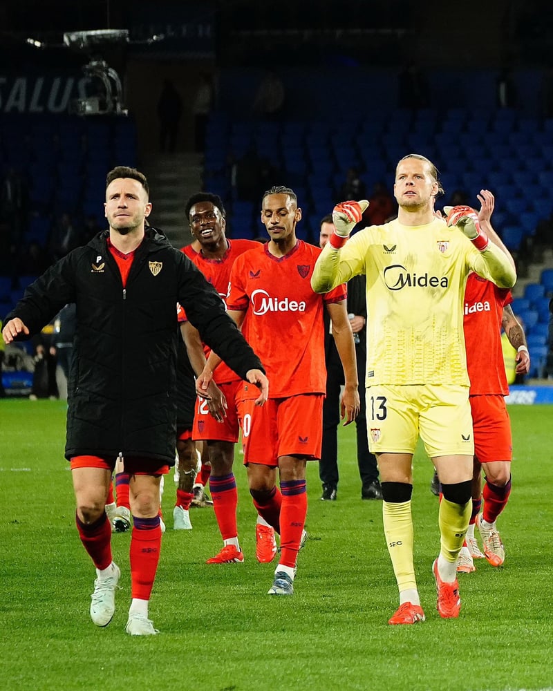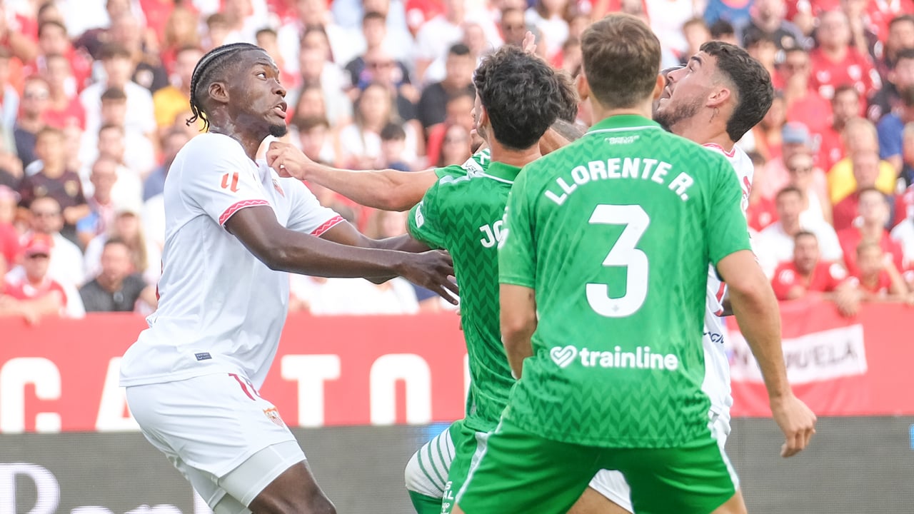 En el polo opuesto, Diego Llorente, que vio amarilla por una entrada sobre Fábio Silva en la primera mitad y salta al grupo de los apercibidos, junto a Isco Alarcón, Cédric Bakambu y Marc Roca. El catalán, ahora mismo renqueante, se jugaría su participación en El Gran Derbi de forzar su retorno ante los 'pepineros', cuando sí estará ya a las órdenes del 'Ingeniero' un 'Chimy' Ávila que ha saldado sus cuentas con el Comité de Disciplina de la RFEF (aunque no con el de la UEFA, por lo que no jugará la vuelta ante el Vitória de Guimaraes). Por parte nervionense, no vieron la quinta en Anoeta ninguno de los tres amenazados, que ya lo seguirán estando de manera directísima: Lucien Agoumé, Djibril Sow y Nemanja Gudelj, el serbio en una situación idéntica al de su homólogo verdiblanco, ya que arrastra una lesión y sólo estaría en riesgo de reaparecer este domingo contra el Athletic Club. Se une a la lista Albert Sambi Lokonga, que frenó una contra realista, por lo que los cuatro mediocentros defensivos se la juegan.
