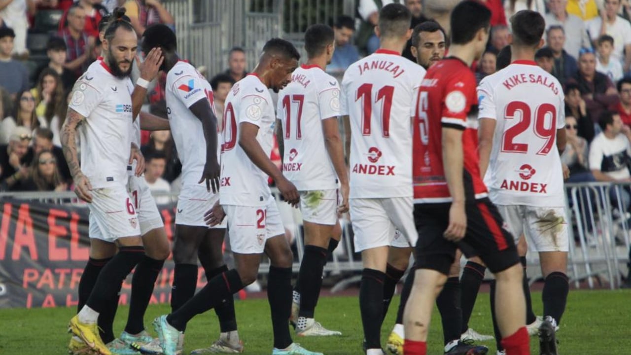 La plantilla del Sevilla, en partido de Copa del Rey.UES