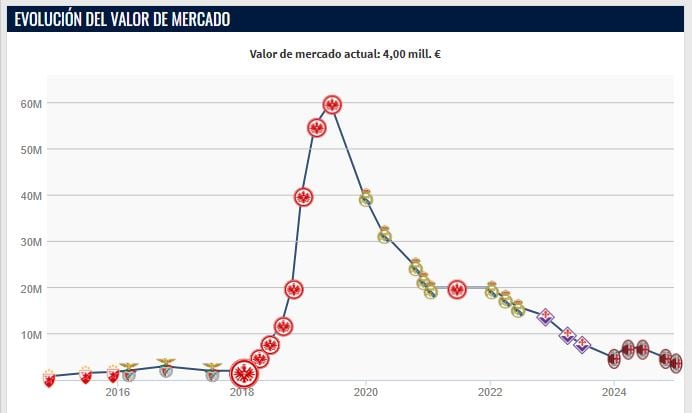 Tres dianas (una de ellas al Sevilla) y cinco asistencias en 51 partidos fue su pobre balance en dos años como merengue. En 2021 volvió cedido al Eintracht, donde su versión fue muy distinta a la de su primera etapa; en 2022 se marchó a coste cero a la ACF Fiorentina, donde dio leves muestras de resurrección -13 dianas y tres asistencias en 50 citas-; pero el cuadro italiano tampoco se lo quedó y en 2023 le vendió por el irrisorio precio de 500.000 euros al AC Milan, que intenta por todos los medios buscarle salida en este mes de enero. Tanto es así, que incluso mediata seriamente rescindirle lo que queda de contrato y su agente, el conocido Fali Ramadani, está moviéndose en consecuencia.