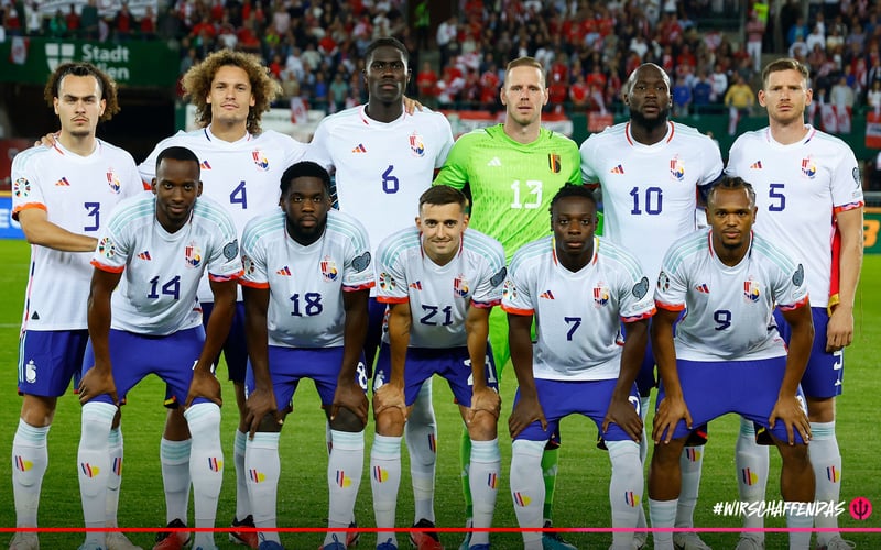 3 - Bélgica: Sels; Theate, Vertonghen, Faes, Castagne; Doku (Keita, m.88), Onana, Mangala (Tielemans, m.64), Lukebakio (Bakayoko, m.71, Vermeeren m.87); Openda (Carrasco, m.45), Lukaku.Goles: 0-1, m.12: Lukebakio. 0-2, m.55: Lukebakio. 0-3, m.58: Lukaku. 1-3, m.73: Laimer. 2-3, m.84: Sabitzer, de penalti.Árbitro: Jesús Gil Manzano (Español). Mostró tarjeta amarilla a Grillitsch (m.15), Seiwald (m. 40), Wimmer (m.54) y Laimer (m.77), de Austria, y por parte de Bélgica a Mangala (m.24), Onana (m. 35 y m. 78, roja), Castagne (m.63) y Lukaku (m.79).Incidencias: encuentro del Grupo F de la fase de clasificación para la Eurocopa 2024 disputado en el estadio Ernst Happel de Viena ante unos 47.000 espectadores. EFE
