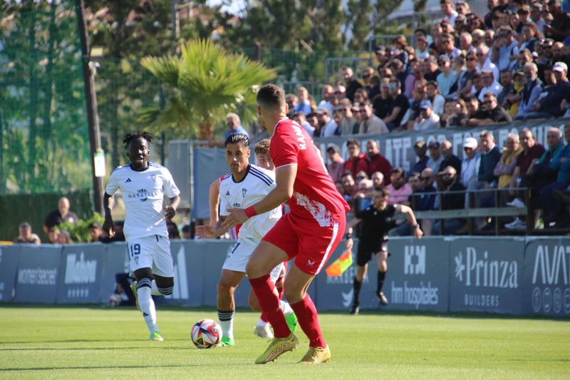 El filial nervionense visitaba el feudo del tercero con la oportunidad de dar un gran golpe sobre la mesa y quedarse muy cerca del objetivo y lo cierto es que arrancó el partido con ímpetu, lo que se refleja en que gozó de las mejores ocasiones en la primera mitad. No en vano, Capi probó fortuna en el 23' con un intento que se marchó fuera por muy poco, mientras que en el 35' el hispano-colombiano Mateo Mejía hacía temblar el palo con un potente remate.