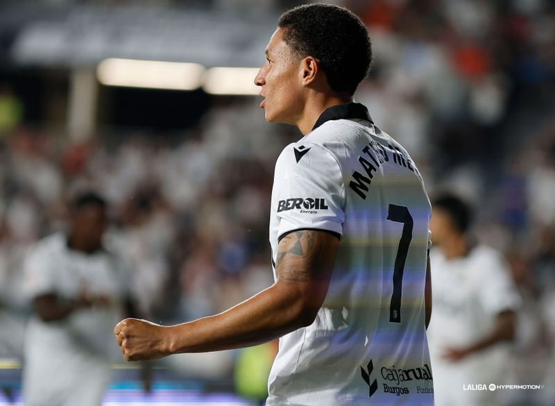 Mateo Mejía no ha podido tener mejor estreno como futbolista del Burgos, conjunto al que llegó este verano tras salir del Sevilla Fútbol Club. El delantero zaragozano no fue titular en la primera jornada pero se apuntó a la goleada burgalesa para cerrar la cuenta marcando el quinto de la noche lanzándose al suelo para remachar hasta el fondo de la portería.