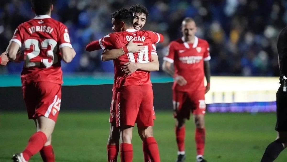 Óscar Rodríguez y Munir celebran el tanto sevillistaED
