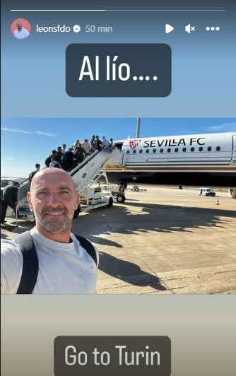 Hoy mismo la plantilla nervionense ha puesto rumbo a Turín, a primera hora de la mañana, con su director deportivo comandando la expedición junto con el presidente José Castro. Y poco antes de montarse en el avión el de San Fernando ha subido una 'storie' a su perfil de Instagram que no por mensaje escueto, ilusiona menos a la afición nervionense. "Al lío... Go to Turín", ha escrito del de San Fernando, provocando ya el 'engorilamiento' de su fiel infantería blanquirroja.