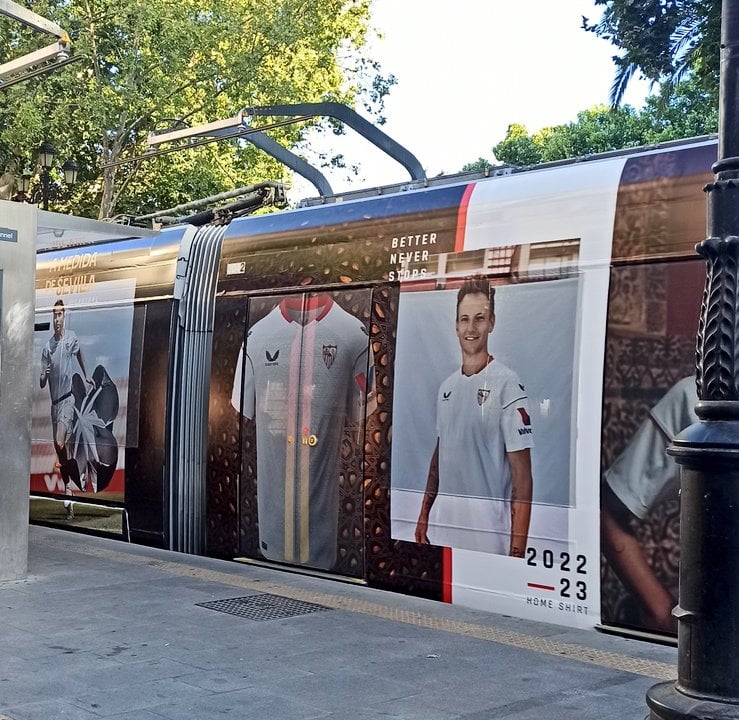 Y es que el propio Ayuntamiento de Sevilla ya la está mostrando por todo el centro de la ciudad a través del Metrocentro, que lleva serigrafiada la publicidad de las nuevas equipaciones en sus vagones, y cómo no, la afición sevillista no ha dejado pasar la oportunidad de poder inmortalizarlo como el autor de la foto que ilustra esta noticia, @JuanSVQ_.