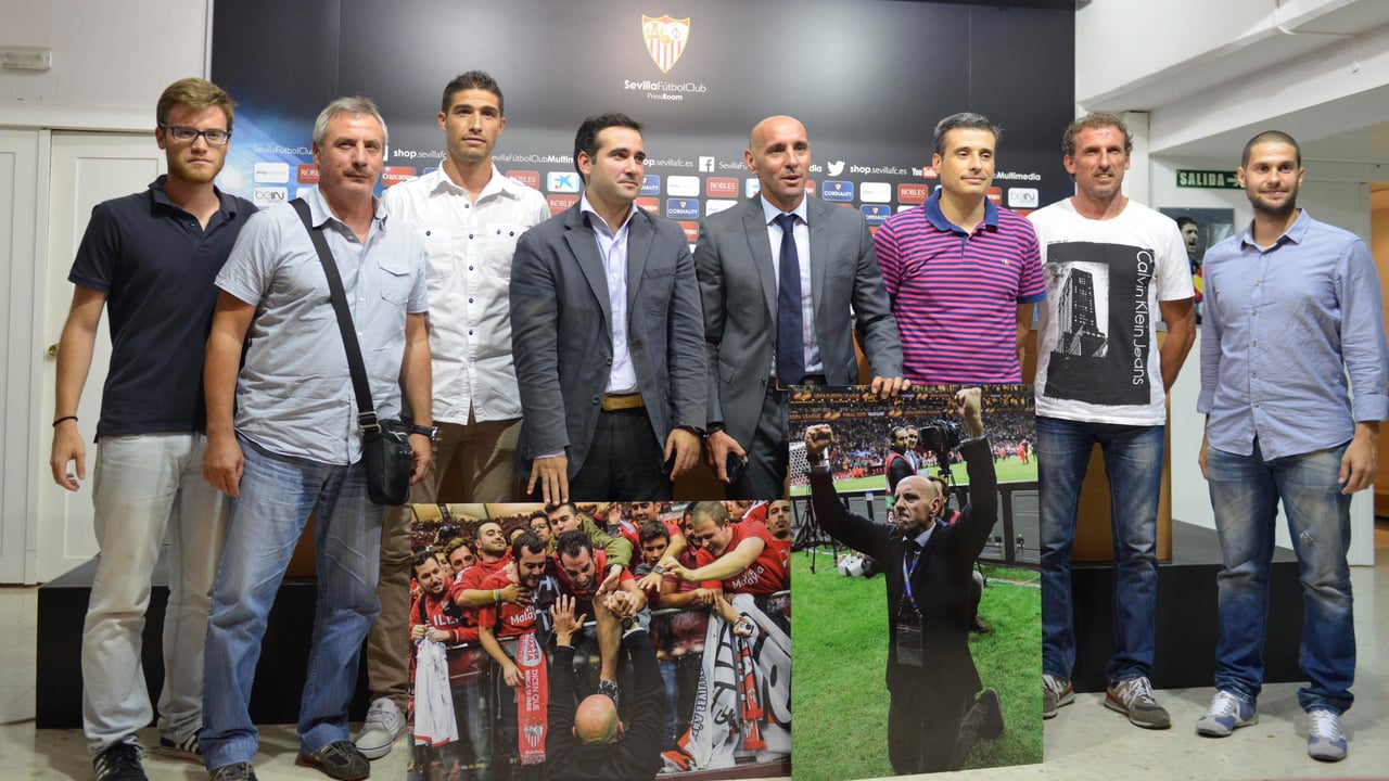 Miguel Ángel Gómez (a la izquierda de Monchi en la imagen de la primera despedida del exportero) no regresará al Sevilla, al menos de momento. Lince