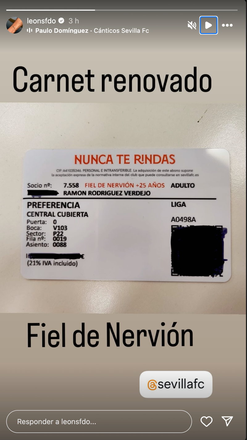 Para muchos, la razón que subyace es la necesidad del Sevilla FC de asegurar los ingresos ordinarios por este concepto antes del 30-J y, por tanto, dentro del presente ejercicio fiscal para que el descuadre no sea mayor, aunque algunos apuntan que podría haber un reajuste y otorgarse unos días más a los socios que no hubiesen tenido tiempo ni dinero para hacer frente al pago. Entre los que demoraron el doble clic en el mensaje recibido para consolidar el abono y mantener la antigüedad, en teoría para meter el miedo en el cuerpo a los dirigentes, está Rodríguez Verdejo, que enarbolaba en su perfil de Instagram su condición de 'Fiel de Nervión' con una imagen de su "carnet renovado". No en vano, Monchi tiene más de 25 años a sus espaldas, como se puede deducir del hecho de que sea el abonado número 7.558, con su asiento en la grada central de Preferencia de la 'Bombonera'.