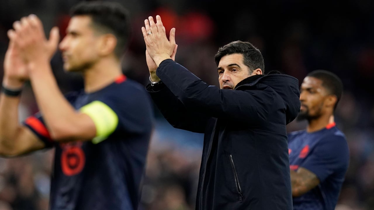 El portugués agradece al público su apoyo en la vuelta de cuartos de la Conference League ante el Aston Villa.CORDON PRESS