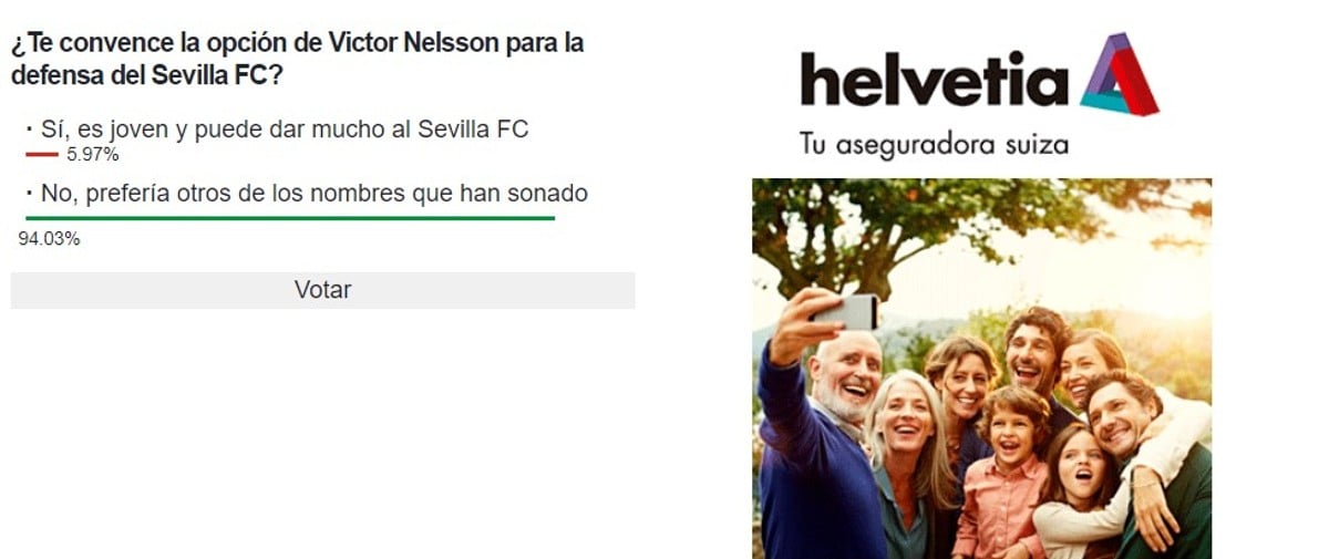 De hecho, no sólo no es el preferido de los aficionados sevillistas sino que, según se desprende de la #EncuestaHelvetia, la afición no está nada contenta con esta gestión y, de manera mayoritaria, muestra su malestar porque el Sevilla cambie la considerada mejor pareja de centrales de Laliga y una de las mejores de Europa por la de un equipo que no acabó ni entre los diez primeros en la Superliga turca.