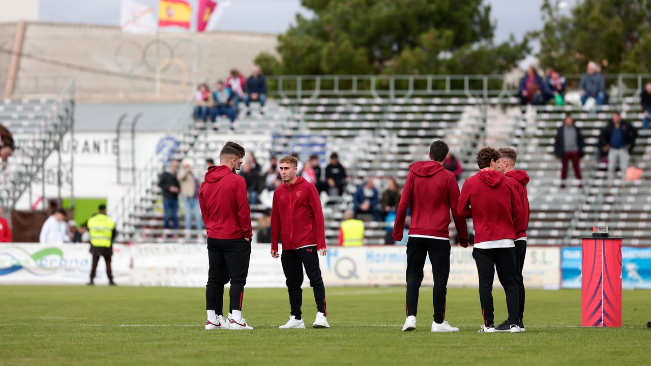 Darío Benavides (en el centro de frente a cámara) vivió su debut con el primer equipo del Sevilla FC en el partido de Copa del Rey en Quintanar.UES