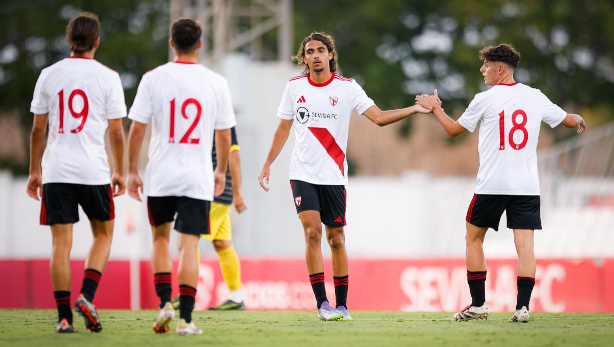 Después de estrenar la primera equipación para la 25/26 en casa ante los Wolves y de lucir por primera vez el segundo uniforme en el desplazamiento a Chiclana (Cádiz), el Sevilla Atlético ha vuelto a vestir hoy de franjirrojo para disputar este duelo de rivalidad provincial que llegó al descanso con un 2-2 en el marcador, gracias al doblete de Isra Domínguez que sirvió para contrarrestar el letal acierto del cuadro visitante, que empató el tanto inicial con un golazo de Moya y se puso momentáneamente por delante con una diana de Antonio. La igualdad se mantuvo hasta el segundo acto, cuando Nico Guillén desequilibró el choque en el 58' con el 3-2, a la postre definitivo.