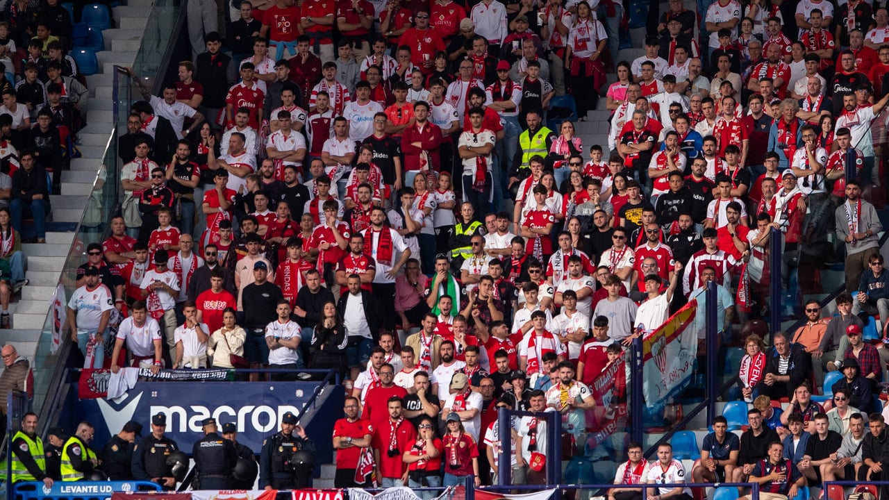 En torno a 350 sevillistas acudieron al Ciutat de València. IMAGO