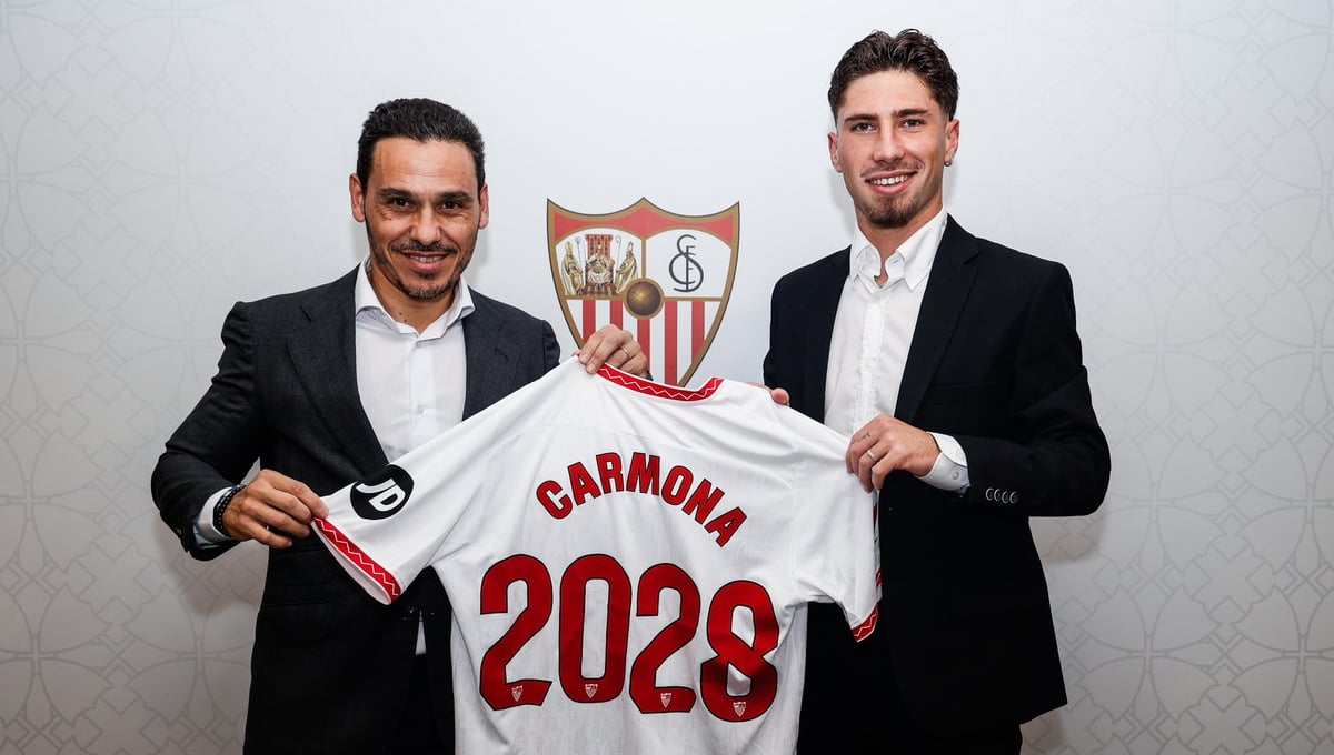 Como estaba previsto, el Sevilla FC ha anunciado este jueves la renovación de José Ángel Carmona, que terminaba contrato el verano que viene y, ahora, queda ligado con el club de su vida, como poco, hasta el 30 de junio de 2028. Revisa al alza el salario y las condiciones la entidad nervionense de su canterano, cuya tremenda regularidad a las órdenes de García Pimienta (indiscutible titular en el costado derecho de la defensa en las catorce jornadas de LaLiga 24/25) había despertado el interés de clubes españoles y extranjeros, sobre todo si se consolidaba su próxima condición de agente libre, por lo que Víctor Orta redobló los esfuerzos para atarlo antes de la ventana invernal. Además, su cláusula de rescisión asciende hasta los 30 millones de euros, suficiente sartén por el mango blanquirrojo en caso de aparecer ofertas en el futuro por el visueño.