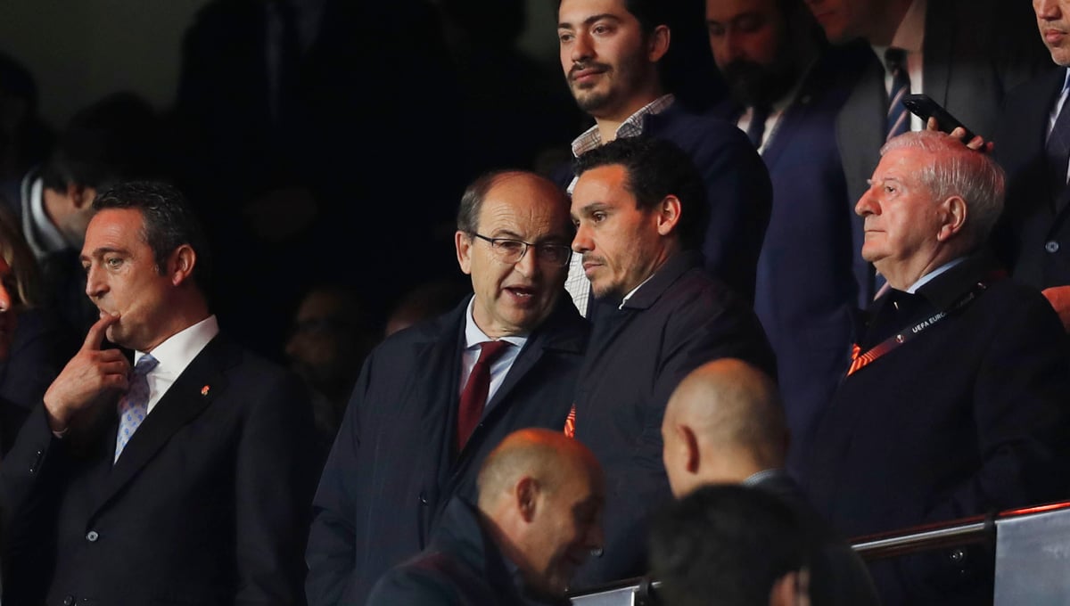 El presidente del Sevilla volvió a recordar la necesidad que tenía el equipo de jugar un fútbol "más ordenado" y sin "arriesgar tanto", a la vez que espera que el partido de vuelta en el Sánchez-Pizjuán haya "una buena atmósfera" para lograr el pase a las semifinales