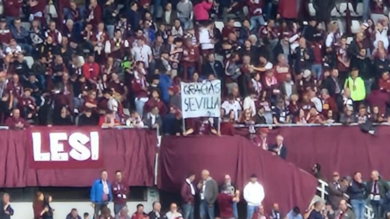 Pero no contento con ello, la afición 'granata' no ha querido dejar pasar la ocasión y ha querido agradecer al Sevilla Fútbol Club que eliminara a su más acérrimo rival en Italia. Hoy, el Torino recibía en casa a la Fiorentina, que precisamente el pasado jueves también se clasificó para otra final europea, la de la Conference League. El exbético Tonny Sanabria lograba igualar el marcador que antes había abierto el exmadridista Jovic.