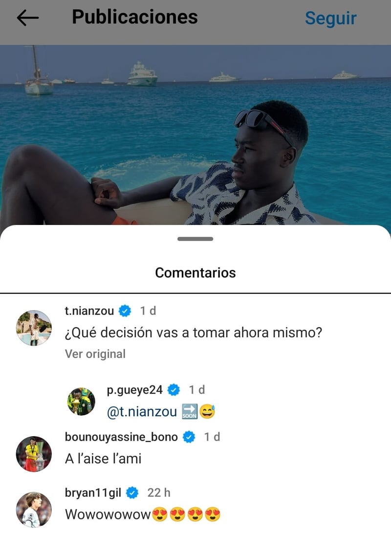 Pape Gueye colgó una foto de sus vacaciones y Nianzou le contestó preguntando por sus planes de futuro, que hace poco apuntaban lejos de Marsella y cerca de Sevilla. Luego, todo quedó en 'stand by' y ahora el OM le manda un inesperado guiño