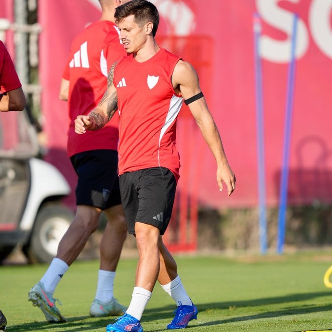 El Sevilla ha vuelto en la tarde de este lunes a los entrenamientos y lo ha hecho con la novedad de Lucien Agoumé ya con el grupo una vez finalizadas sus vacaciones. Además del centrocampista galo, también se ha podido ver a Juanlu Sánchez, que no jugó el partido amistoso del pasado sábado ante el Sunderland ante la inminencia de su traspaso al Nápoles.